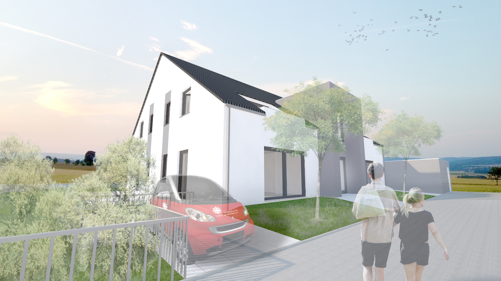 Die Caritas e.V. schafft neuen Wohnraum für Personen, die auf Grund psychischer Erkrankung am Wohnungsmarkt benachteiligt sind. In einem Neubaugebiet in Bonn Geislar entstehen dafür zwei baugleiche Apartmenthäuser mit jeweils sieben Wohnungen.